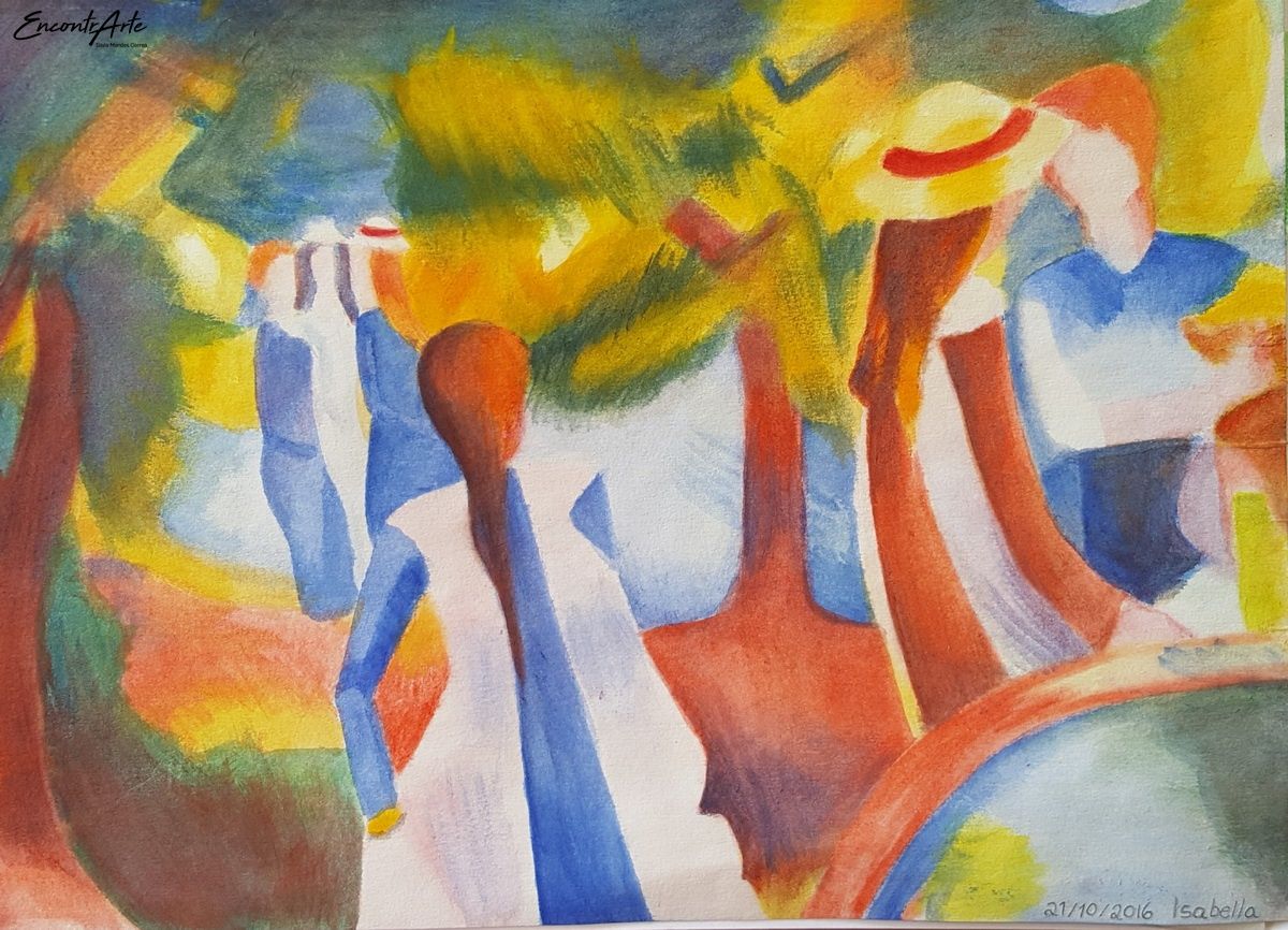 “As primeiras sessões de pintura têm geralmente um tema livre para que a pessoa possa se familiarizar com a técnica e expressar genuinamente as suas tendências e conteúdos internos.