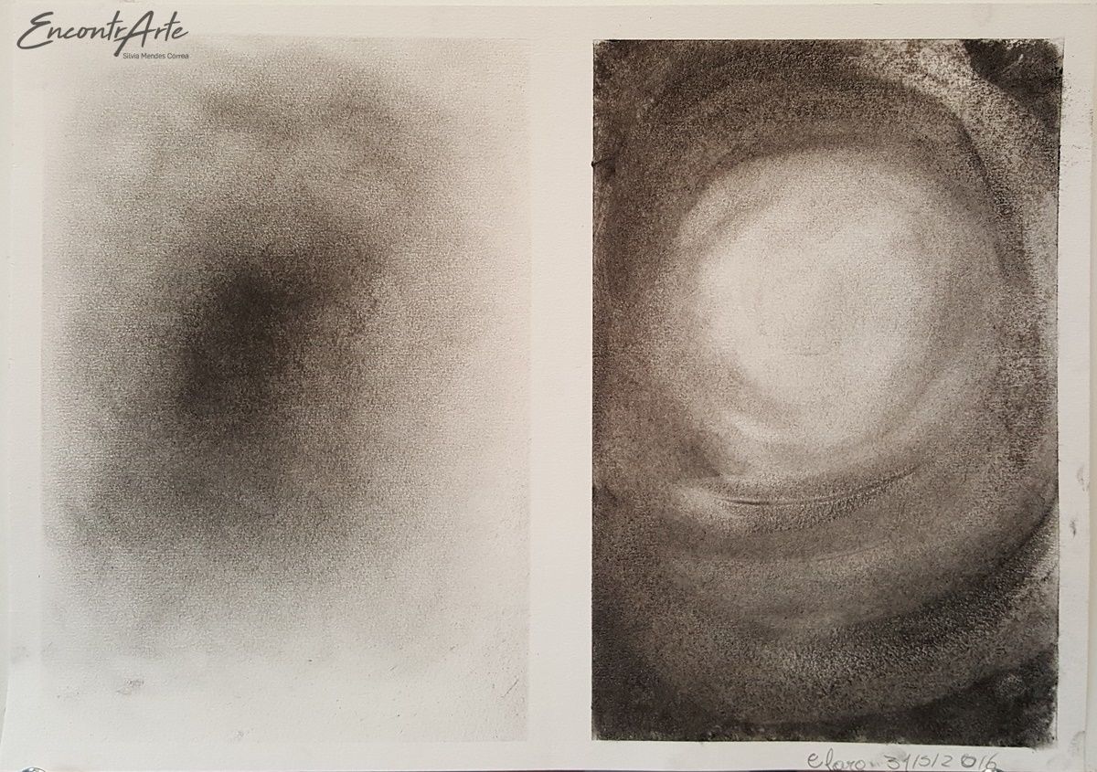 No papel seco, temos a técnica do “velado”, a pintura é feita em camadas: espera-se a superfície pintada secar para sobrepor a próxima. É usada em situações onde é necessário tomar distancia das emoções para trazê-las à consciência. Há também situações em precisamos da cor, mas pela característica da doença (hemorragia ou colite ulcerosa) não é indicado lidar com água, usamos então o lápis de cor ou o giz pastel.